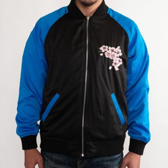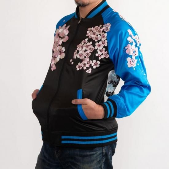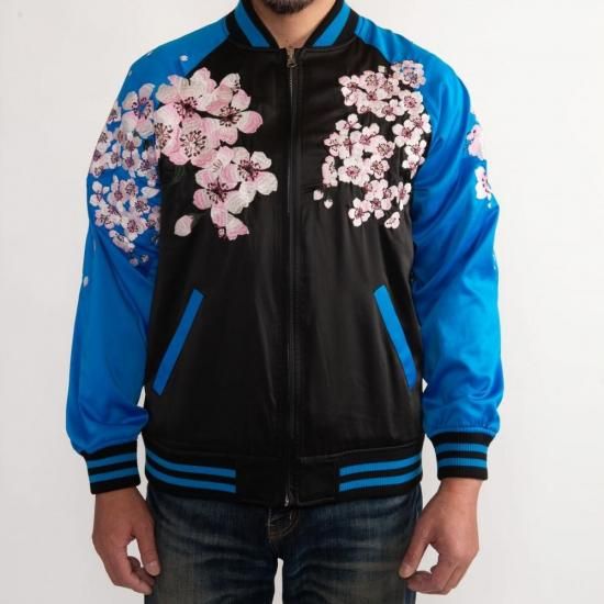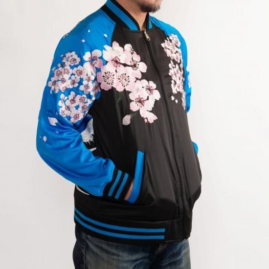 桜の花弁や富士山のグラデーションを、繊細な刺繍で表現したオリジナルスカジャン。