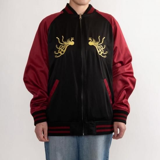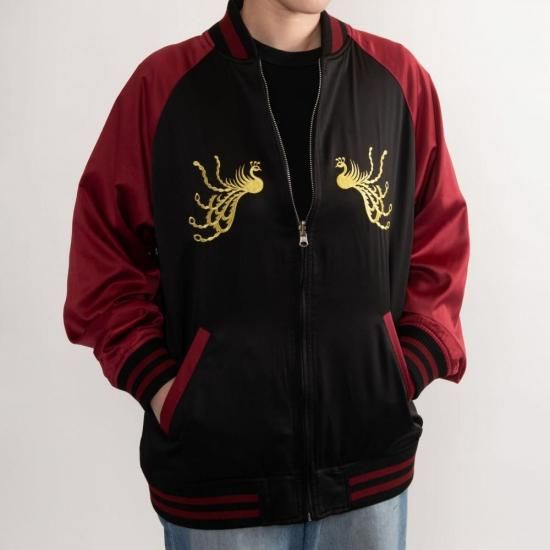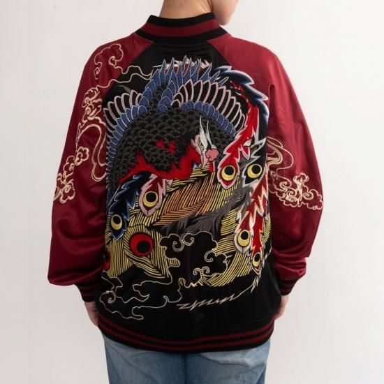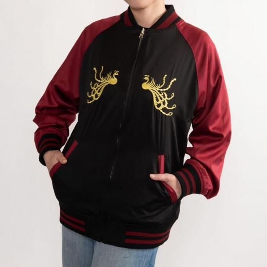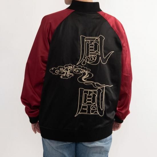 裏面は、ゴールドの糸で「鳳凰」の文字とたなびく雲をあしらい、シンプルながらも上品な印象に。華やかさと落ち着きを兼ね備えたリバーシブル仕様で、シーンに合わせて異なる雰囲気を楽しめます。和の美を纏うオリジナルスカジャンとして、コレクションにも贈り物にも最適な一着です。サイズはM〜XXLまで豊富にご用意しました。