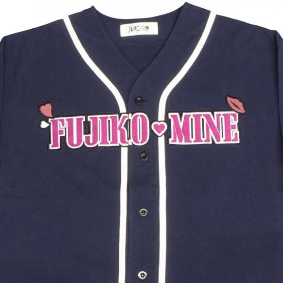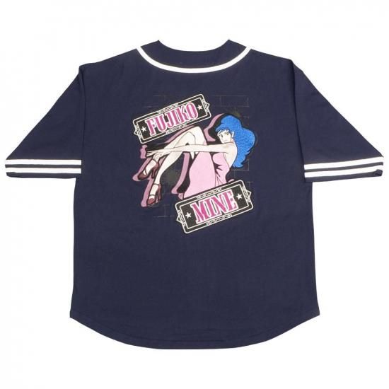 『ルパン三世 PART2』のオープニングカットに登場する峰不二子を、刺繍とプリントで華やかにデザインしたオリジナルベースボールシャツ。