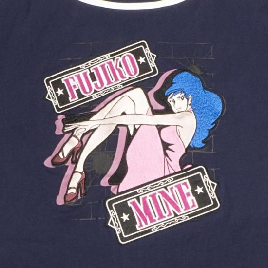背面にはセクシーで洗練された不二子のシルエットを大胆に表現し、フロントには「FUJIKO MINE」のロゴをキュートなハートとリップマークで装飾。