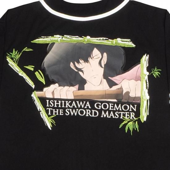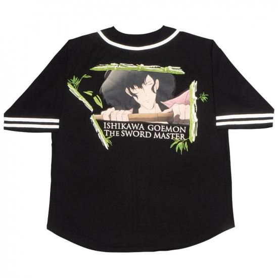 ルパン三世PART4のオープニングカットに登場する石川五ェ門を、プリントと刺繍で丁寧に仕上げたオリジナルベースボールシャツ。
