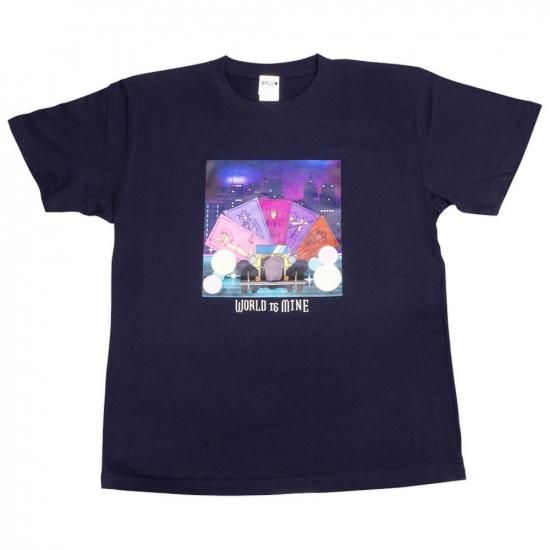 夜景を思わせるネイビーカラーのボディに、銀色に輝くラメインクで描かれたプリントが印象的です。